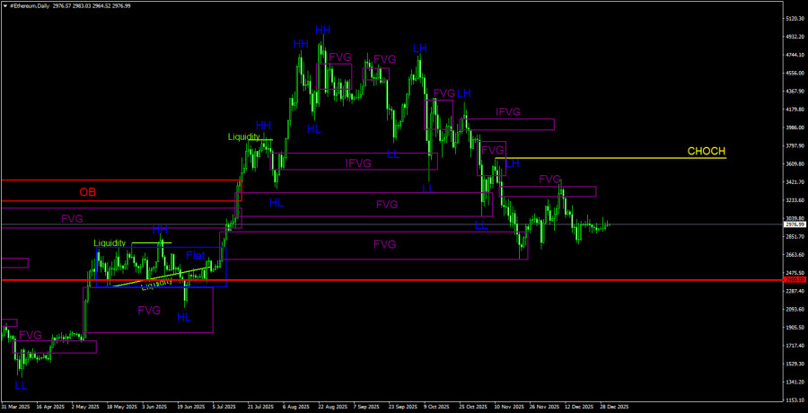 Торговые рекомендации по Эфиру(Ethereum) на 1 января по системе ICT. Эфир продолжает стоять на одном на одном месте, как и весь криптовалютный рынок. Затишье продолжается уже несколько недель подряд, праздники затянулись... Впрочем, это не должно вводить кого-либо из трейдеров