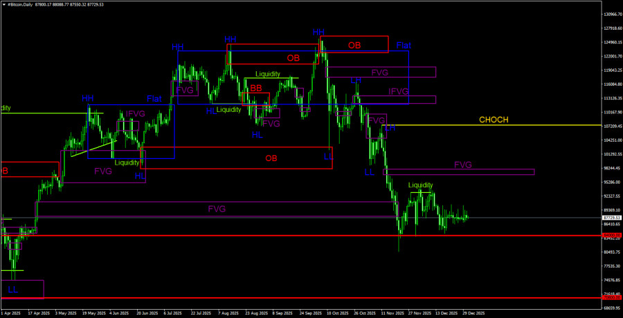 Торговые рекомендации по Биткоину(Bitcoin) на 1 января по системе ICT.