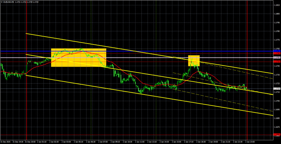 Торговые рекомендации и разбор сделок по EUR/USD на 5 января. Праздники закончились, коррекция продолжается.
