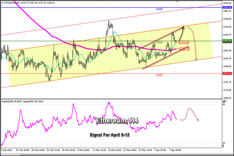 Trading Signals for ETH/USD on April 10-12, 2026: buy above $2,170 (200 EMA - 3/8 Murray) The Eagle indicator is showing a bearish signal, hence a pullback toward the resistance zone of $2,320 to $2,350 is expected in the coming hours. This could put downward pressure